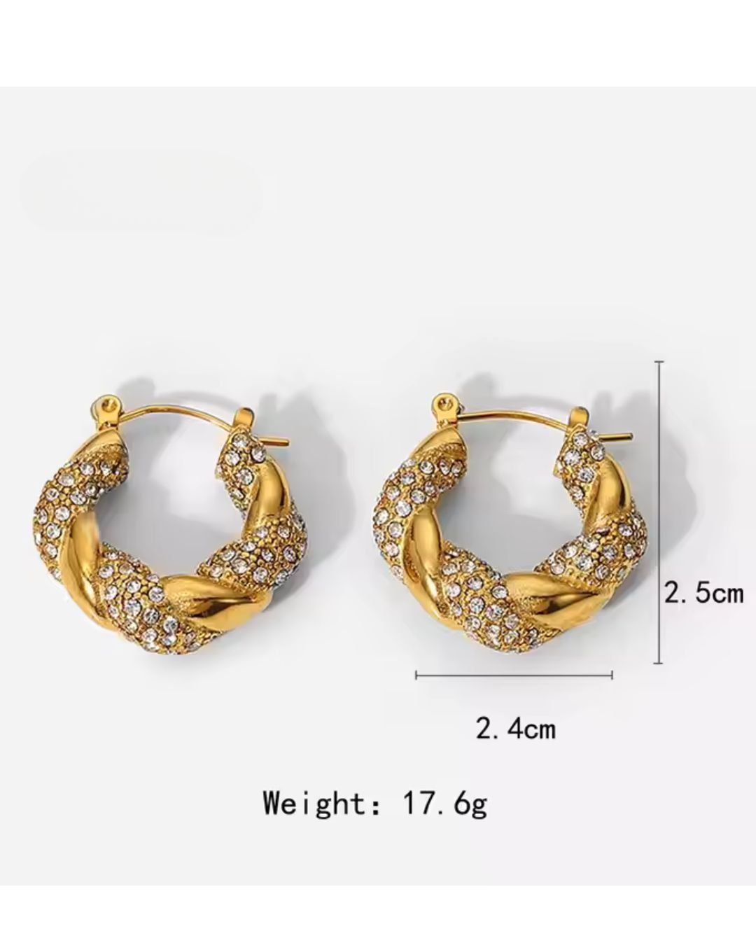 Our Zircon Twisted Party Hoops are designed to dazzle — featuring a twisted silhouette encrusted with shimmering zircon stones. Lightweight yet statement-making, they’re perfect for your next night out or any moment you want to shine a little brighter.